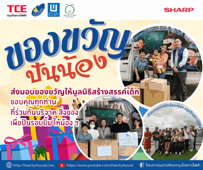 เมื่อเร็วๆ นี้ บริษัท กรุงไทยการไฟฟ้า จำกัด (TCE) ร่วมกับ บริษัท เวสเทอร์น พร็อพเพอร์ตี้ และ อาคารธนภูมิ ได้จัดกิจกรรมภายใต้โครงการ "ของขวัญปันน้อง" โดยได้ตั้งกล่องรับบริจาคของขวัญและสิ่งของจำเป็น เพื่อส่งมอบให้กับมูลนิธิสร้างสรรค์เด็ก สร้างความสุขและรอยยิ้มให้กับเด็ก ๆ ที่อยู่ภายใต้การดูแลของมูลนิธิ