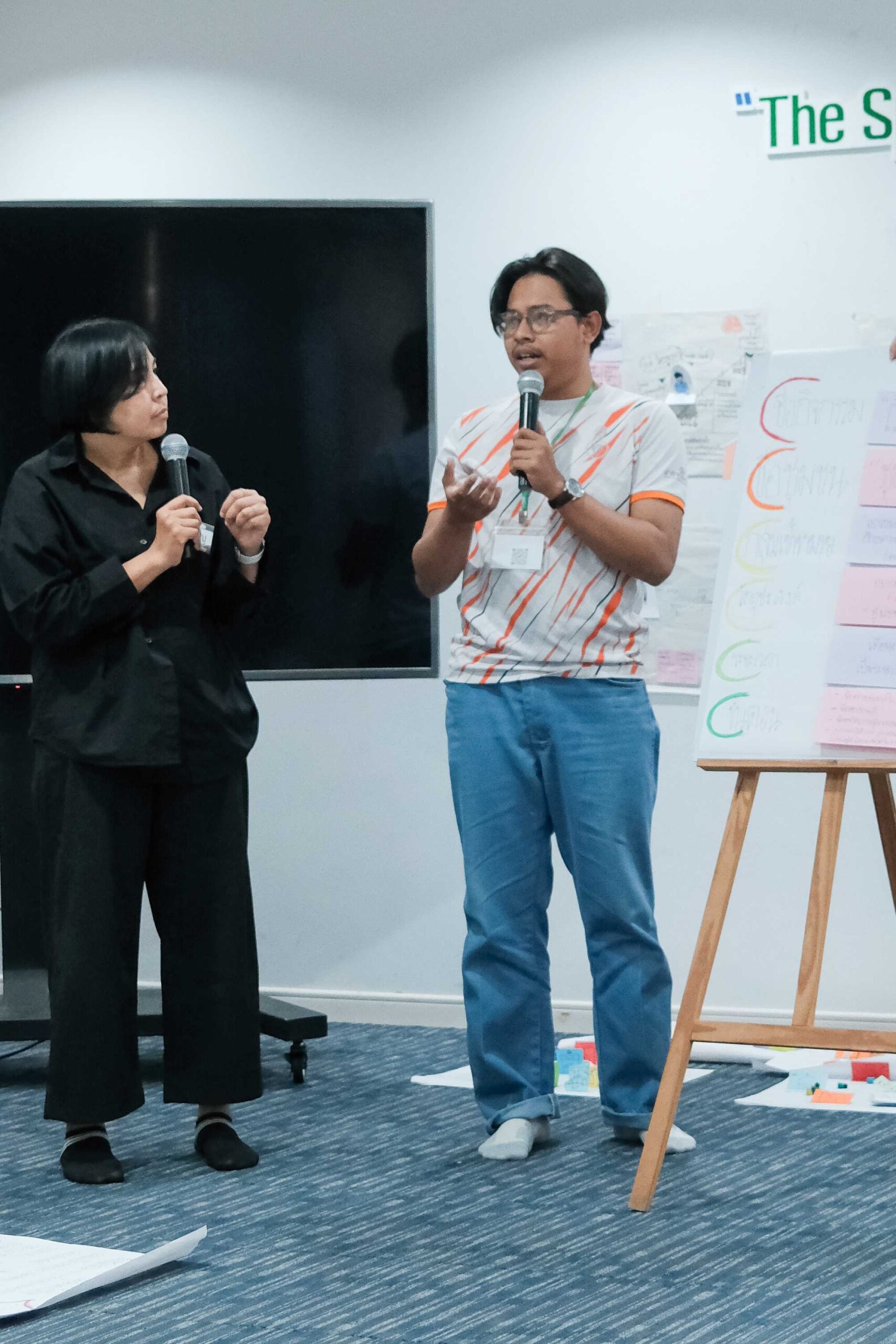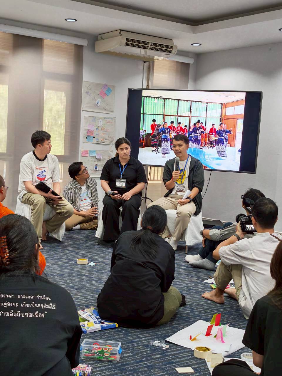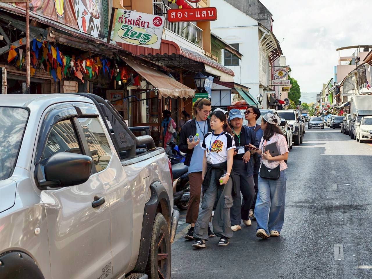 นอกจากนี้ ยังได้พานักเรียนทุนฯ ลงพื้นที่เดินเมืองย่านเมืองเก่าสงขลา ซึ่งถูกกำหนดให้เป็น โมเดลการเรียนรู้เชิงพื้นที่ (Area-based Learning) เพื่อให้ผู้เข้าร่วมได้สัมผัสสถานการณ์จริง ทั้งในด้านโอกาสและอุปสรรคของ การพัฒนาชุมชน โดยได้รับเกียรติจาก คุณครูดาว ฒามรา พรหมหอม แกนนำรุ่นใหม่ในพื้นที่และเครือข่ายก่อการครูภาคใต้ มาร่วมแบ่งปันแนวคิดการวางแผนงานและการขับเคลื่อนกิจกรรมชุมชนท่ามกลางการเปลี่ยนแปลงทางสังคม พร้อมทั้งแนะนำวิธีการเข้าถึง “รากเหง้าและวัฒนธรรม” ผ่านประสาทสัมผัสทั้ง 5 ซึ่งเป็นกระบวนการสำคัญในการ ปรับทัศนคติสู่การมี Growth Mindset และ การมองเห็นคุณค่าที่ซ่อนอยู่ให้มากกว่าการสังเกตด้วยสายตาเพียงอย่างเดียว อันจะเป็นการสร้างโอกาสใหม่และจุดประกายพลังแห่งการพัฒนาชุมชนอย่างยั่งยืน