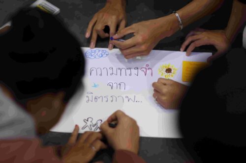 กิจกรรมวันแรก วันที่ 14 พ.ย. 2567 พี่ ๆ วิทยากรมะขามป้อมพาน้อง ๆ ละลายพฤติกรรม ละลายความเหน็ดเหนื่อยจากการเดินทาง เล่นเกมกันแบบเบา ๆ กระชับความสัมพันธ์ ชวนกันร้องเพลงสื่อสารแสดงท่าทางความรู้สึกภาพความทรงจำที่มีต่อกิจกรรมค่ายที่ผ่านมาที่อยากบอกกับเพื่อน ๆ โครงการทุนฯ และร่วมกันกำหนดกติกาการอยู่ร่วมกัน