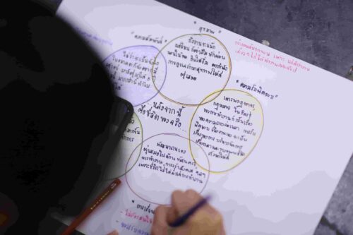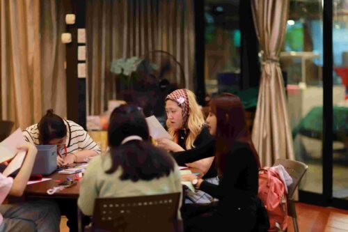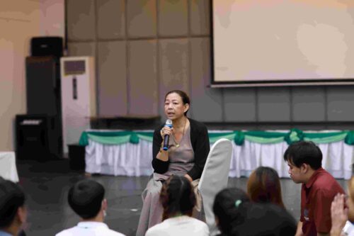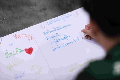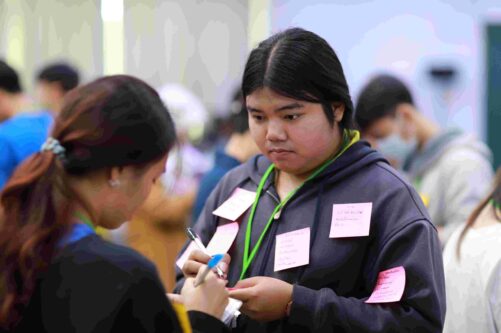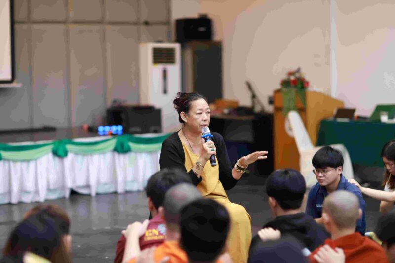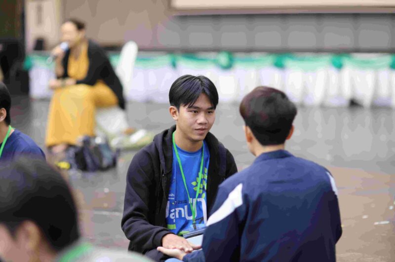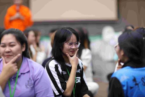 และชวนกันแยกกลุ่มย่อยตามชั้นปี พูดคุยกันในหัวข้อ “อะไรคือโจทย์ความท้าทางของชีวิตในปีถัดไป” ซึ่งน้อง ๆ ได้ร่วมกันพูดคุยอย่างสนุกสนาน ชวนตั้งเป้าหมายความคาดหวังคุณภาพชีวิตในแง่มุมต่าง ๆ ทั้งเรื่องการเรียน ครอบครัว ความรัก และการรับผิดชอบต่อตัวเองและสังคม