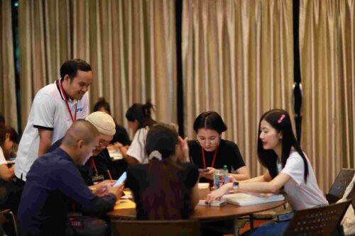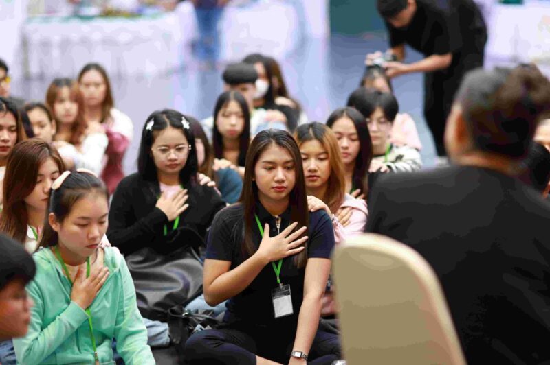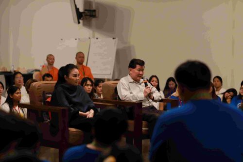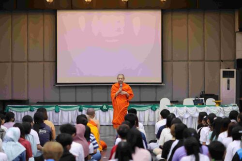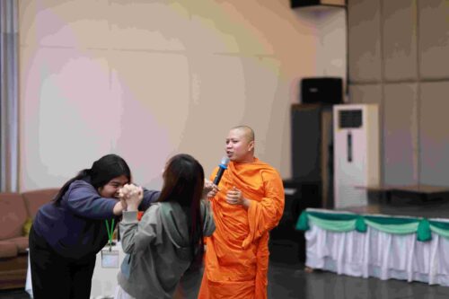 นอกจากนี้ พระอาจารย์ยังให้นักเรียนทุนฯ ได้เปิดโอกาสถามคำถามเกี่ยวกับเรื่องศาสนา ความเชื่อ และธรรมะ และเน้นย้ำถึงความสำคัญของ สัมปชัญญะ ซึ่งหมายถึงความรู้ตัวในขณะทำ พูด หรือคิด โดยเป็นธรรมที่เกื้อหนุนสติและปัญญาภาวนา การพัฒนาปัญญาผ่านการรู้เท่าทันโลกและความจริงจะช่วยให้นักเรียนทุนฯ เข้าใจตนเองและสิ่งรอบตัวได้ลึกซึ้ง การฝึกสัมปชัญญะควบคู่กับปัญญาญาณจึงเป็นกระบวนการสำคัญที่นำไปสู่ชีวิตที่สมดุล มีสติในทุกการกระทำ และสามารถมองเห็นความจริงของชีวิตได้อย่างชัดเจน