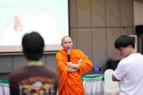 วันที่ 16 พ.ย. 2567 อีกหนึ่งวันของกิจกรรมที่โครงการทุนฯ ได้จัดขึ้นในรูปแบบการสอดแทรกธรรมะ "Play and Learn เพลินธรรม" โดยมีคณะพระวิทยากรนำกิจกรรม ได้แก่ พระครูสังฆรักษ์ปัญญา วรปญฺญาเมธี (วัดระฆังโฆสิตารามวรมหาวิหาร กรุงเทพฯ), พระวชิระ สุปภาโส (วัดเทวีวรญาติ กรุงเทพฯ) และพระคำ วชิรวํโส (วัดนาคกลางวรวิหาร กรุงเทพฯ) พระอาจารย์ถ่ายทอดธรรมะผ่านกิจกรรมในหัวข้อ “รู้โลก รู้ธรรม รู้นำธรรมไปใช้” พร้อมด้วยคำสอนว่า "รู้ไว้ใช่ว่าใส่บ่าแบกหาม" เพื่อให้ผู้เข้าร่วมตระหนักถึงความสำคัญของการรับฟังที่แท้จริง พระอาจารย์ได้กล่าวว่า “ผู้ฟังมากย่อมมีปัญญามาก ผู้ฟังน้อยย่อมมีปัญญาน้อย” การรับฟังที่ดีควรเปิดใจให้ผู้อื่นได้พูดในสิ่งที่เขาอยากถ่ายทอด มากกว่าการกำหนดให้เขาพูดเพียงสิ่งที่เราต้องการฟัง ซึ่งเป็นปัจจัยสำคัญต่อการอยู่ร่วมกันในสังคมอย่างราบรื่น