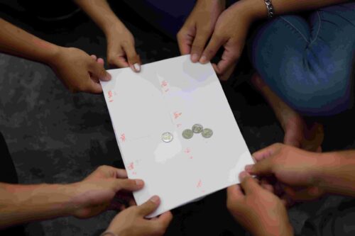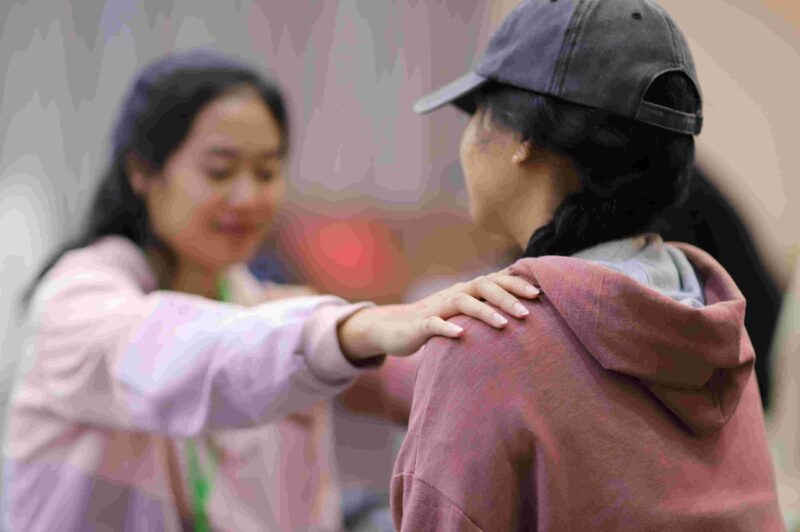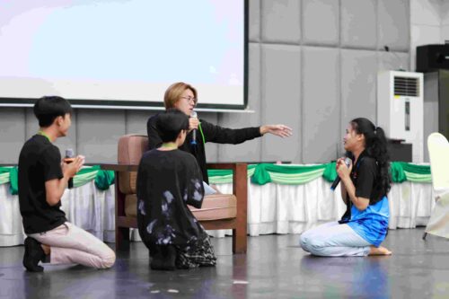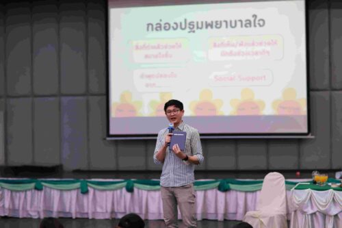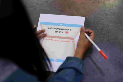 นอกจากนี้ ยังชวนกันทำกิจกรรมแสดงละครเป็นกลุ่มเพื่อแสดงอารมณ์โดยที่ไม่ต้องพูดว่ากำลังมีอารมณ์อะไรอยู่ ทำให้น้อง ๆ เห็นว่าการแสดงอารมณ์นั้น บางครั้งก็แสดงออกมาโดยที่ไม่ตั้งใจ และไม่ง่ายเลยว่าจะสื่ออารมณ์ที่อยากจะสื่อ ถ้าเราไม่พูด ไม่สื่อสาร อีกทั้งยังแนะนำเทคนิคฝึกสติ โดยค่อย ๆ เรียบเรียงให้สมองได้ทำงาน แนะนำเทคนิคตั้งหลักตั้งสติมองสิ่งรอบตัวแล้วสัมผัสที่กำลังสัมผัสอยู่ ฟังเสียงที่ได้ยิน ดมกลิ่มที่ได้กลิ่น สูดหายใจ ,เทคนิคการฝึกหายใจแบบกล่อง ,เทคนิค progressive muscle relaxation เทคนิคการจินตนาการเพื่อการผ่อนคลาย, และส่งต่อเครื่องมือ “กล่องปฐมพยาบาลใจ” ให้นักเรียนทุนฯ ได้นำกลับไปใช้ เพื่อดูแลตัวเองเมื่อหัวใจบาดเจ็บ
