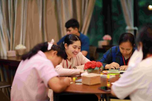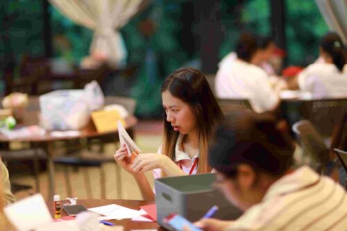 ในช่วงบ่ายของวันนี้ ศิษย์เก่าและนักเรียนทุนจากทั่วประเทศที่เคยได้รับโอกาสทางการศึกษาจาก โครงการทุนการศึกษา บริษัท กรุงไทยการไฟฟ้า จำกัด ได้ทยอยเดินทางมาร่วมกิจกรรมประจำปีที่เต็มไปด้วยความอบอุ่น หนึ่งในกิจกรรมที่สร้างความประทับใจคือการทำการ์ด "สื่อสารใจถึงใจ" เพื่อส่งถึงคุณศุภชัย และคุณสงวนศรี สุทธิพงษ์ชัย ผู้บริหารโครงการที่นักเรียนทุนเรียกด้วยความเคารพว่า "คุณพ่อคุณแม่" ซึ่งเป็นผู้มอบโอกาสสำคัญทางการศึกษาทั้งในระดับปริญญา และอาชีวศึกษา